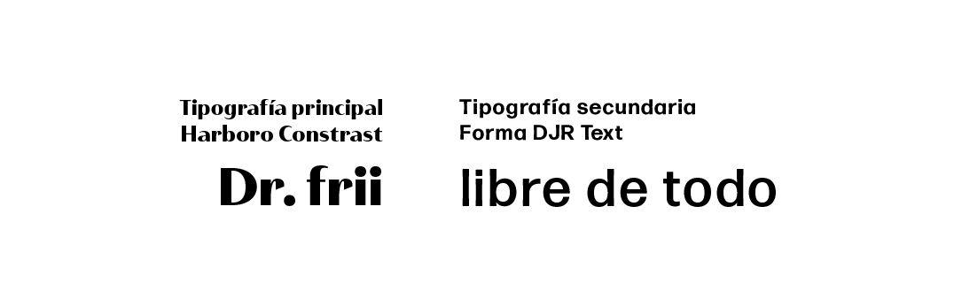 Esta se complementa con la “Forma DJR Text”, como segunda tipografía. Es de palo seco, muy limpia. Es idónea tanto para párrafos de texto como para enunciados.